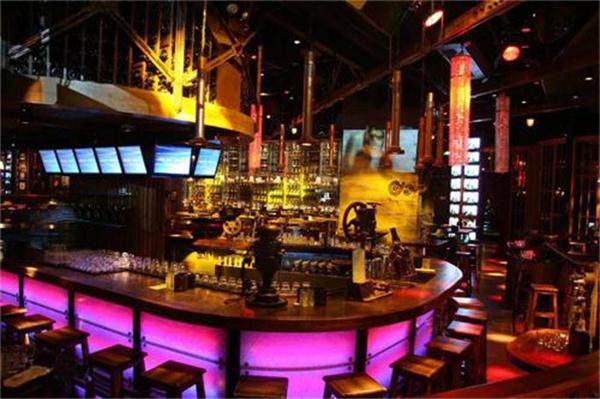 蘇荷酒吧的室內設(shè)計(jì)以工業風元素作為整個空間的主元素,用鋼鐵、齒輪、玻璃、舊原木等材料,來營造厚重粗狂、奔放自由的娛(yú)樂氛圍,同時,融合後(hòu)工業時(shí)代的時尚輕鬆和維多和亞(yà)時代的繁(fán)華藝術,讓進入酒吧的顧客(kè)對藝術、自由、華麗、時尚和頹廢的(de)新感覺。