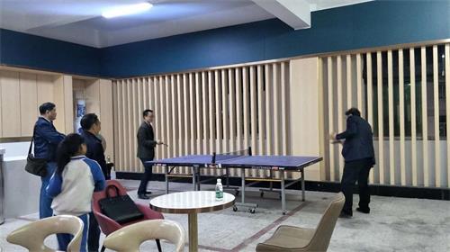 4.參觀指導之餘葉教授和王院長等一行領導看到辦公區(qū)大廳旁的(de)乒乓球(qiú)台時,便禁不住一時興起想活動一下,兩人便(biàn)揮拍對練起來,球藝精彩叫好,同時讚成這種將運動設備擺進(jìn)辦公區的方式很好,即可學習運動員的頑強拚搏精神(shén),也可強身健體為實現宏偉的計劃目標提供強壯的身體保障,同時吸引(yǐn)更多的優秀人(rén)才加入海德利共同發展創造奇跡。