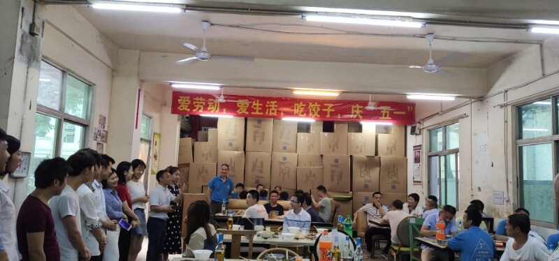 聚餐是在4月30日晚上(shàng),辦公(gōng)室的小夥伴(bàn)們精心準備了餃(jiǎo)子,而且是家(jiā)人們自己親手做的,每一個餃子裏都是一顆顆(kē)愛心和感恩的心。公(gōng)司還為聚餐(cān)增加了兩小菜(cài),還有酒水和飲料,再加上“愛勞動愛生活,吃餃子,慶五一”的橫幅有了一點點節日的氣氛。