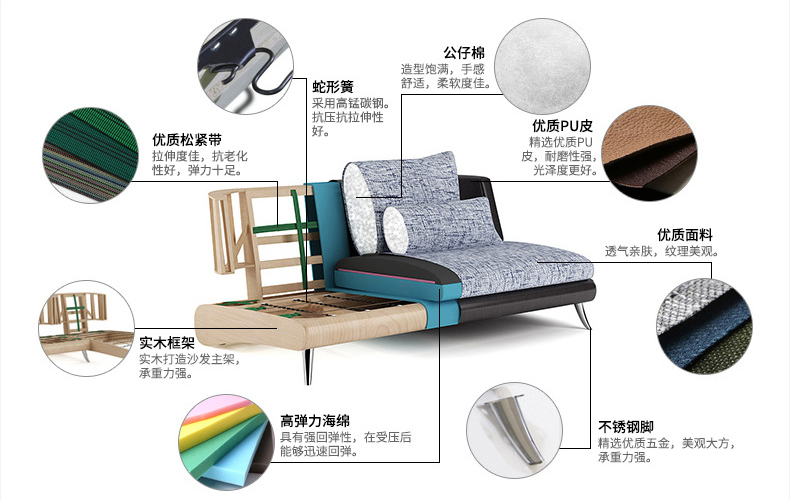 沙發(fā)的坐墊有兩種類型,一種是(shì)彈簧包(bāo),一種是全海綿。低端沙(shā)發還(hái)有用蛇形豎彈簧和發泡橡膠、公仔海綿的,這種變形不耐久、橡膠硬(yìng)化不舒服,基本隻有3~5年壽命。中高端產品用更(gèng)牢固的高彈(dàn)性繃帶和不易(yì)變形的S形橫向彈(dàn)簧,填充物主要有高回彈(dàn)記憶海綿坐墊應選擇36-50公斤(jīn)/立方米以上的高彈泡沫海綿,背墊應使用密度25-35公斤/立方米以上的高彈泡沫海綿,不易變形。