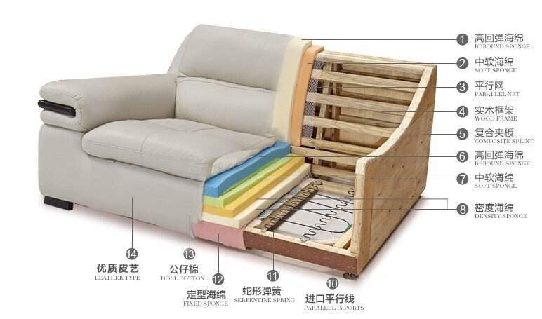 沙發木結構的(de)牢固(gù)程度:沙發(fā)分內木架和外木架(jià),木結構的牢(láo)固程度決定沙發的使用壽命,木材的(de)質量有優劣等級(jí)。有些家具用(yòng)邊角餘料甚至樹皮料填充沙發靠背或扶手(shǒu)側麵,分量不輕,但使用久一點就會斷裂。價格低一點的一般用雜木,中等的有用鬆木,內骨架用東北落葉鬆,要(yào)比一般的鬆木硬,不易變形,咬釘牢固。外木(mù)架則以美國(guó)黃楊木為主,不變形、不開(kāi)裂、紋理清晰。骨架的輔助結構還有(yǒu)單麵板(bǎn)、中纖板、膠合板(bǎn)等,不僅材質差別很大(dà),板材的原料(liào)也影響沙發的牢固,板材的優劣等級也同樣影響沙發牢固(gù)