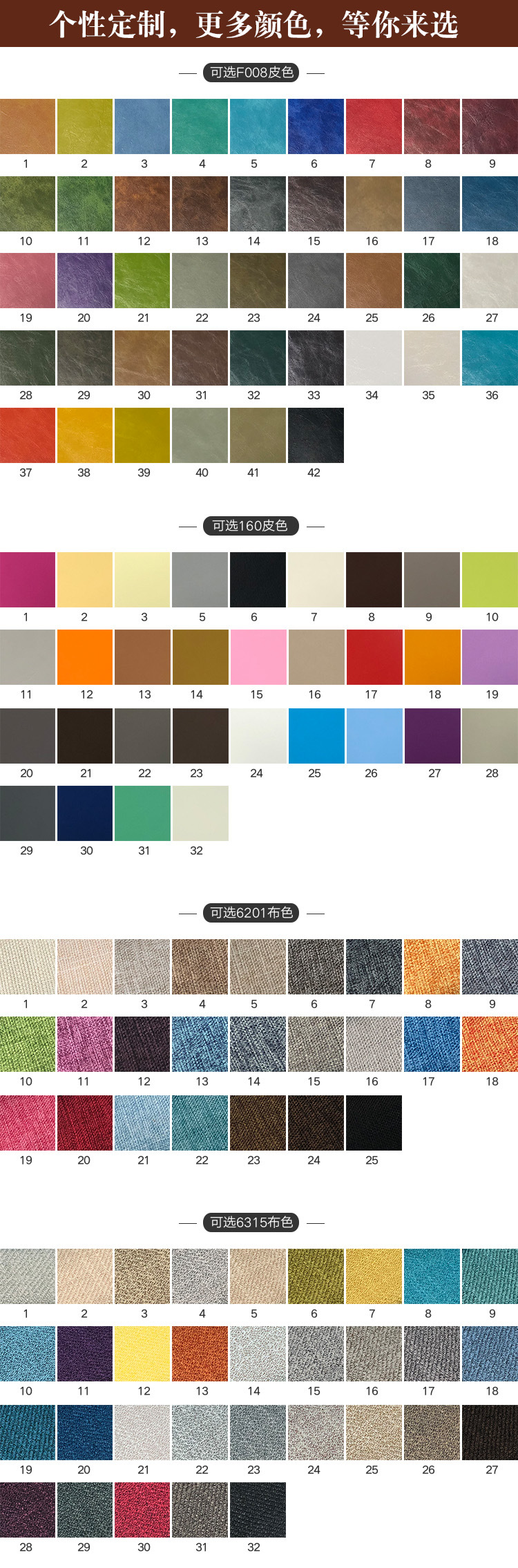 沙發的飾麵以真皮和布藝為主,包括仿真皮(pí)、超纖皮、PU革在內的不要考(kǎo)慮。真皮沙發50%的成本(běn)是牛(niú)皮,其中以意大利進口頭層牛皮為最佳,其皮胚柔韌牢固,皮麵的(de)處理部位少,手感光滑柔軟、氣味淡較為環保。其次就是國產牛皮,中(zhōng)端產品比較常見。在選用皮料時,一定要考慮(lǜ)性價比,我們建議在(zài)不同場所根據(jù)實際情況,用真皮與人造皮革(gé)搭配,既經濟實惠又保證以後(hòu)更換麵料方便性。我們建議與人(rén)體直接關係的部位,列如生墊就用真皮,增強坐感的舒適和耐用。其它不與人體直接關聯的部位列如靠背的後麵扶手的後麵就用人造皮革飾(shì)麵