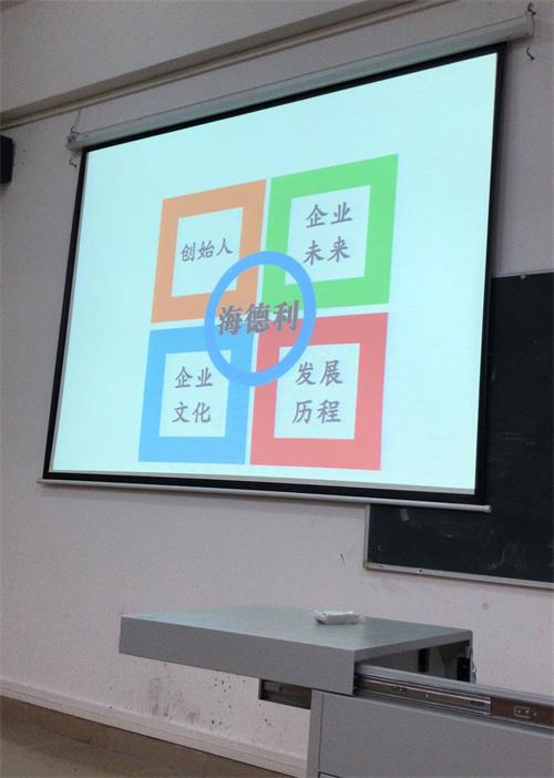 輪到海德利穀細堂總經理(lǐ)上台分享的時間。穀先生用PPT通(tōng)過投影儀向師生展示海德利風(fēng)貌。整個演講內容包括“創始人介紹”、“海德利發展曆程(chéng)”、“海德利企業文化”和(hé)“海德利的未(wèi)來”。