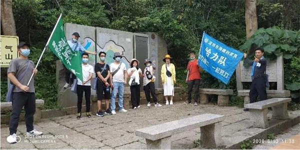由於其他(tā)事情的(de)耽擱,爬(pá)山活動偏離預定計劃一個小時左右。在采(cǎi)購完登山所需要的的食物和水之後,團隊成員(yuán)李勤和我們的帶隊的穀樹(shù)坪經理重新製定了登山路(lù)線。即從鹽田山腳下(xià)作為起始出發點奔向大梧桐,鵬城第一峰。全程2146米,海拔943.7米。上午十一點半左右來到鹽田區梧桐山腳下,開始了今天真(zhēn)正的攀登之(zhī)行。圖為海德利的(de)小夥伴在山腳(jiǎo)下的(de)集體留(liú)影