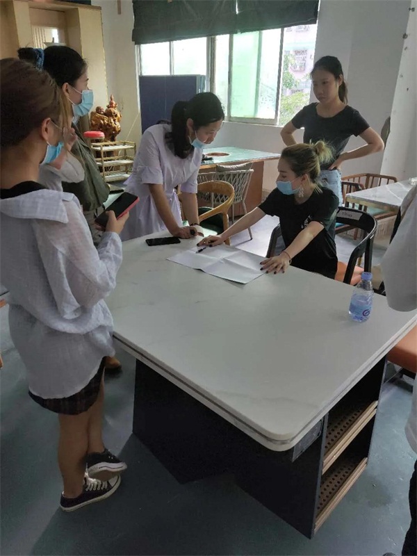 在做(zuò)表記茶餐廳的餐桌(zhuō)椅的時候因為自己(jǐ)的粗心,把皮革麵料搞錯了,等(děng)完(wán)工即(jí)將交貨時,才發現錯誤。此時距離交貨(huò)期已經很近了,毫無辦法的耿(gěng)欣急抱頭大哭,一是自責自己的粗心(xīn),沒有及早發現問題;二是擔心不能及時交貨,耽(dān)誤客戶開業。但耿欣(xīn)知道哭不能解決問題,她(tā)擦幹眼淚,立馬采取補救措施。自掏腰包緊急購買麵料,協調工人師傅加班加點生產,全程(chéng)跟蹤整個生產過程,最後(hòu)在全體人(rén)員的共同努力下,終於在交貨期(qī)截止前順利交貨。