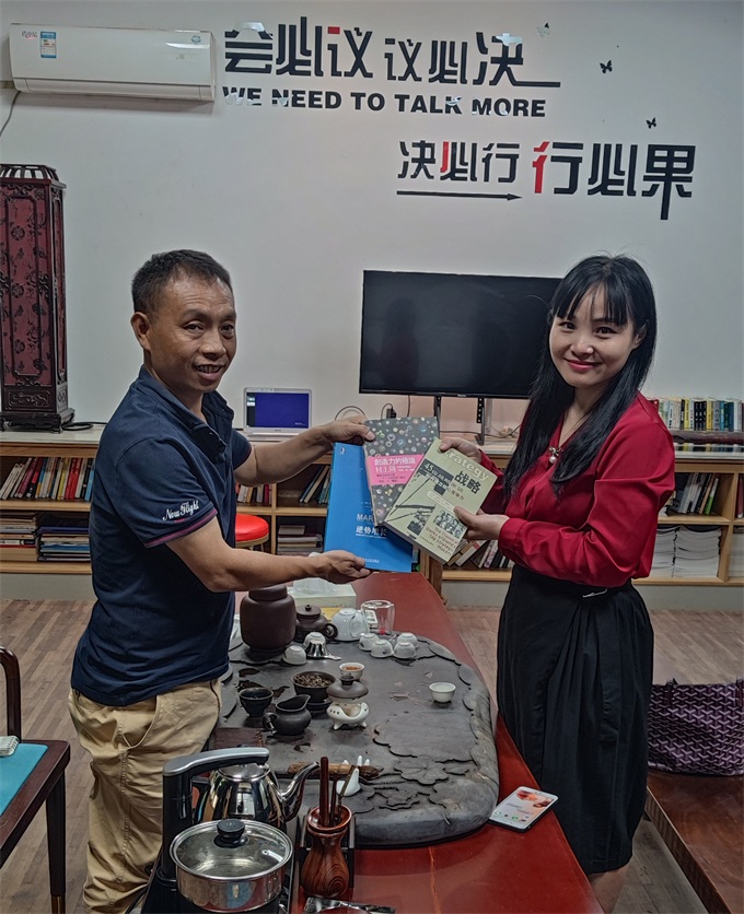 圖:穀先生贈上三本書給薑(jiāng)小姐