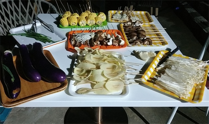 圖:小夥伴洗幹淨並串起來燒(shāo)烤的蔬菜