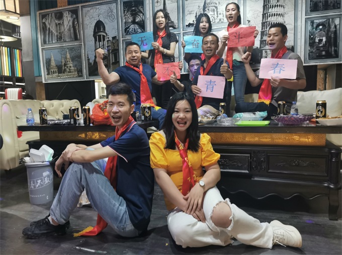 酒足飯飽後,大家還(hái)一起做了幾(jǐ)個(gè)小遊戲,一次次把活動推向了高潮!不知不覺已經到了晚上十(shí)點多,有些同事準備(bèi)回家了,我們一起拍了具有紀念意義的視頻,大家帶上紅領(lǐng)巾,為青春幹杯,一起高喊:“無奮(fèn)鬥、不青春”!這就是我們的(de)海德利,值得我們所有小夥伴為之拚搏、奮進!