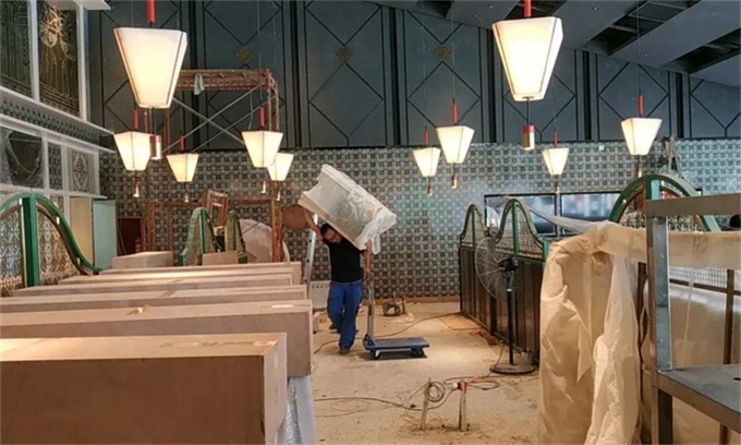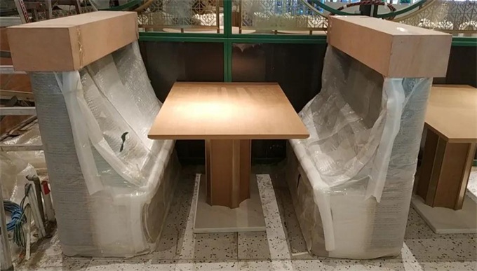 可是,一看到新餐(cān)廳四周的餐廳家具都是由我們海德利提供,幹勁就又上來了。第二天(tiān)上午8:00,我們又派來(lái)了另外4位師(shī)傅到餐廳安裝桌子,擺放椅子和卡座。