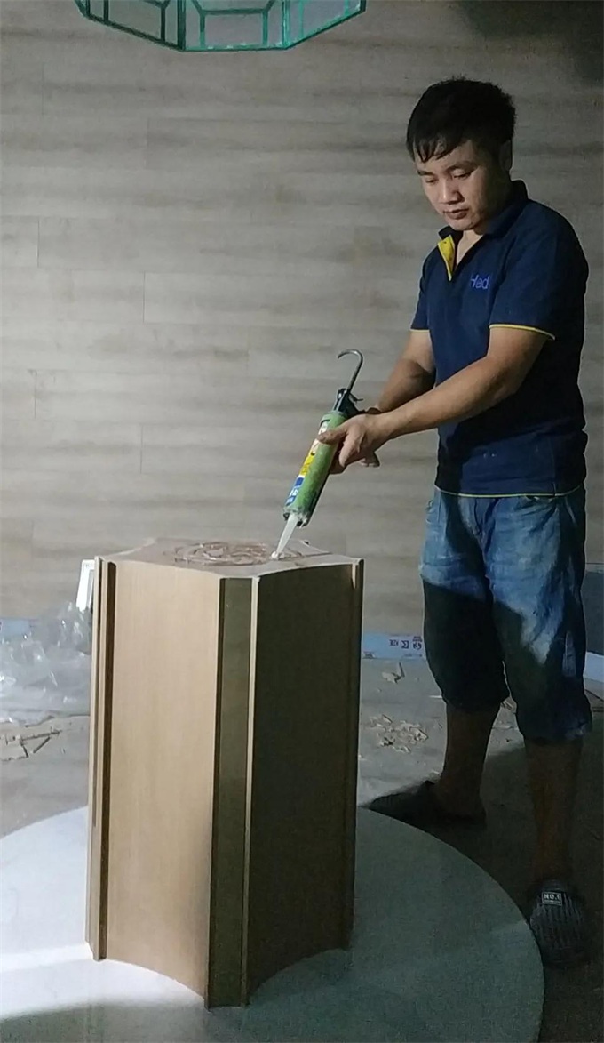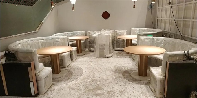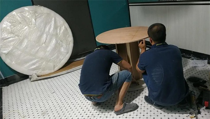 當我們把超直徑1800mm的大理(lǐ)石台麵從一樓搬(bān)到二樓,動用了7個人,才順利(lì)完成任務(wù)。又是一天辛苦勞作,終於把所(suǒ)有桌子安裝好,並把所有家具擺放到位,等待客戶的檢測。
