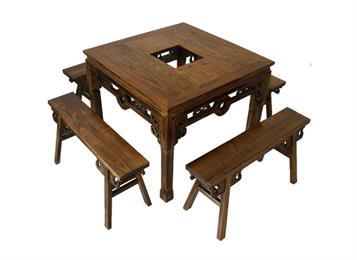 榆木方形煤氣(qì)灶電磁(cí)爐火鍋桌仿古銅錢八仙桌