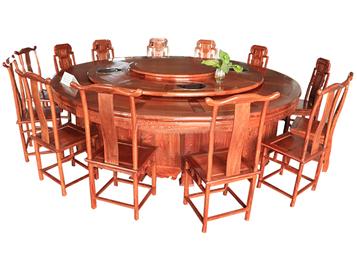 高端圓(yuán)形帶轉盤火鍋桌_白鳥雕(diāo)花每人每鍋實木電動火鍋(guō)餐桌