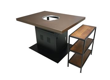 實木方形花紋桌麵黑(hēi)色方桶腳(jiǎo)電磁爐自助火鍋燒烤一(yī)體桌