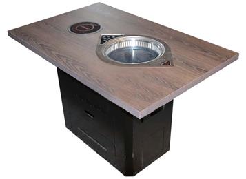 烤涮一(yī)體自助無煙紙上烤肉桌_實木電磁(cí)爐無煙淨化火鍋燒烤桌