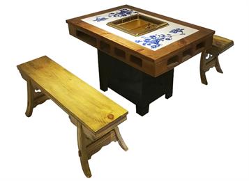 仿古實木雕花新中式無煙淨化火鍋桌(zhuō)椅