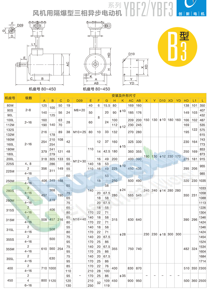 YBF2YBF3風機(jī)用防爆三相異步電機(jī)